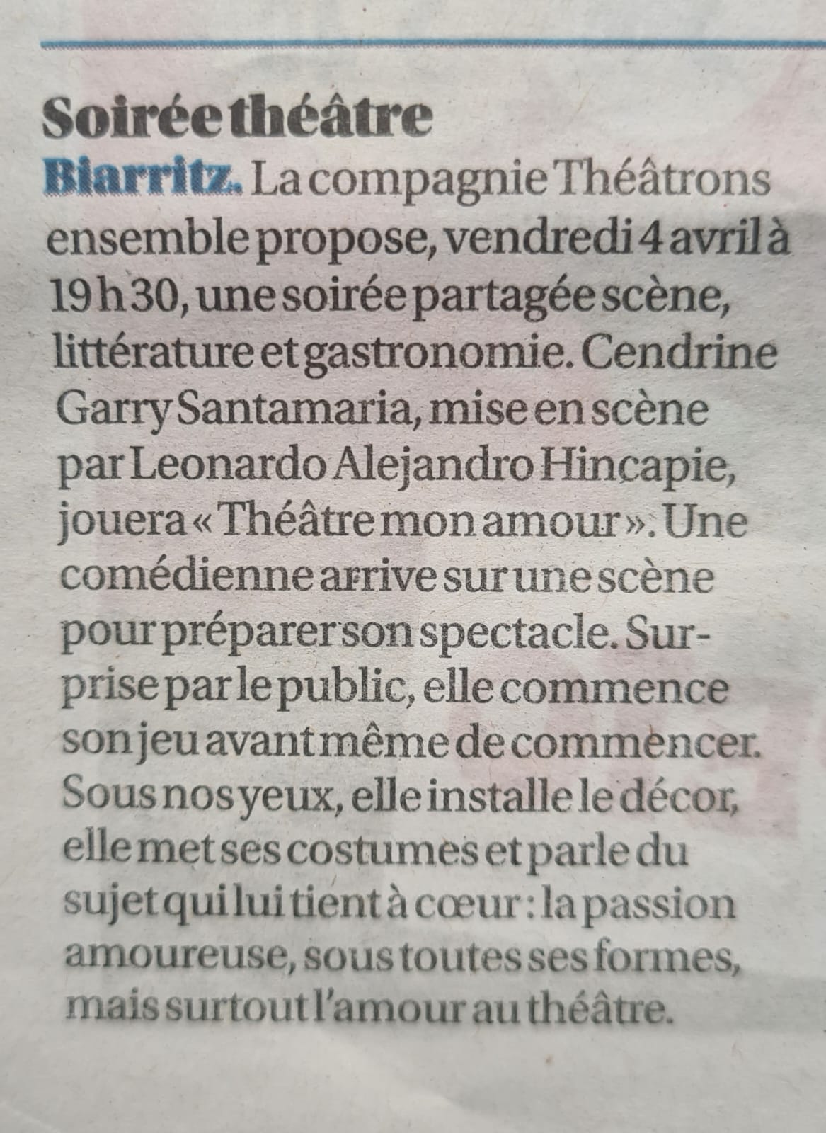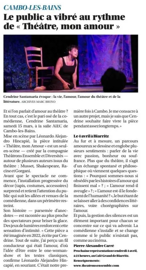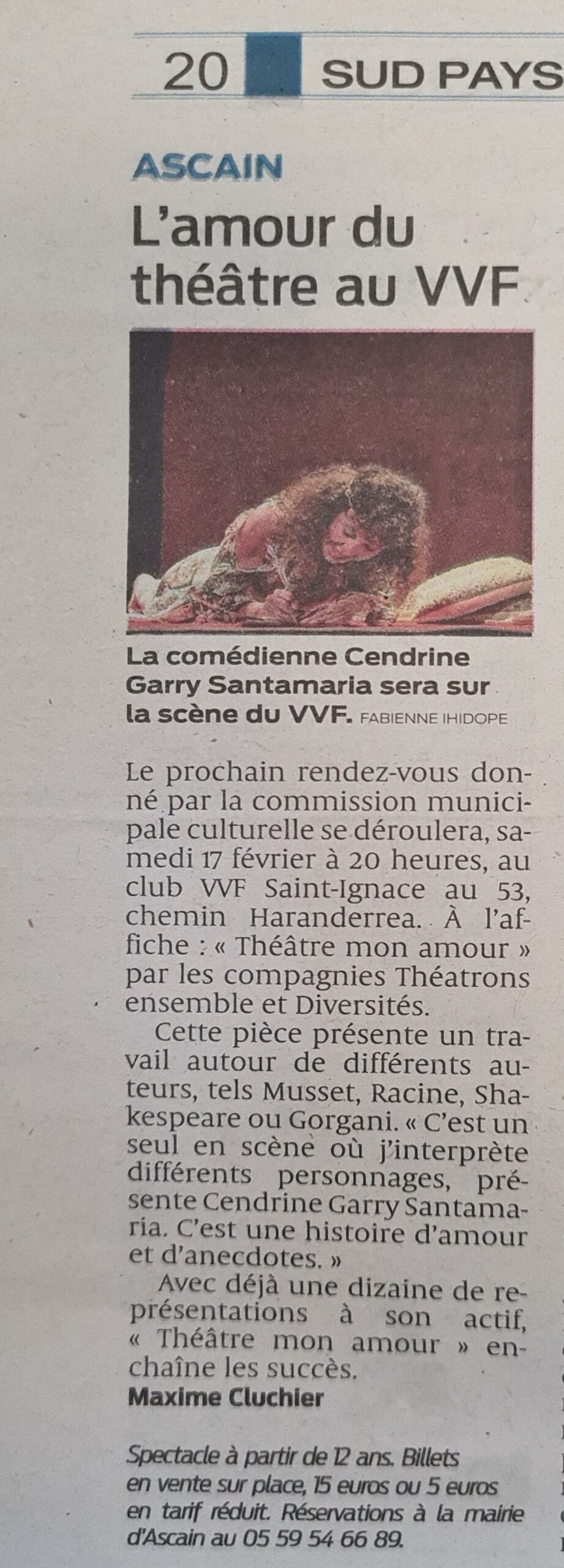 Article Sud Ouest le 12 février 2024, représentation à Ascain.